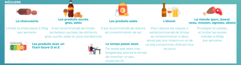 Réévaluation de l’état nutritionnel et nouveaux conseils associés. Suivi des points d’actions et mise en place de nouvelles stratégies diététiques au besoin. La fréquence des suivis varie selon les besoins.